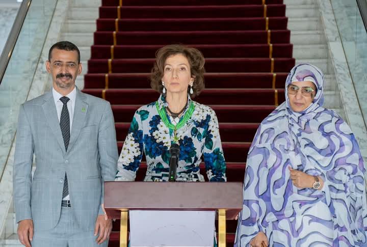 وفي تصريح أدلت به عقب اللقاء، عبّرت أزولاي عن شكرها وامتنانها لرئيس الجمهورية على الدعوة الكريمة لزيارتها الأولى لموريتانيا، مشيدة بالتراث الثقافي الغني الذي تزخر به البلاد. وهنأت موريتانيا على إدراج "ملحمة صامبا گالاديو" ضمن قائمة التراث الثقافي غير المادي لليونسكو، وأثنت على دور "المحظرة" التي أدرجت في القائمة ذاتها العام الماضي، مؤكدة أهمية مساهمتها في حفظ ونقل المعارف.