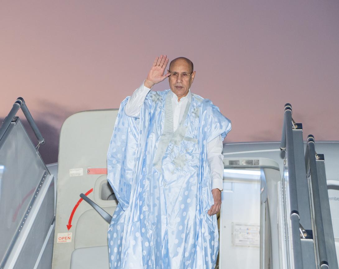وقد ودّعه في مطار نواكشوط الدولي "أم التونسي" الوزير الأول المختار ولد أجاي، وعدد من أعضاء الحكومة والمسؤولين، من بينهم وزير الشؤون الخارجية والتعاون الإفريقي والموريتانيين في الخارج محمد سالم ولد مرزوك، ووزير الداخلية محمد أحمد ولد محمد الأمين، وقائد الأركان الخاصة لرئيس الجمهورية الفريق البحري اسلكو ولد الشيخ الولي، بالإضافة إلى المديرة المساعدة لديوان رئيس الجمهورية غانديغا فاتيماتا، ووالي نواكشوط الغربية امربيه ربه ولد بونن ولد عابدين، ورئيسة جهة نواكشوط فاطمة بنت عبد المالك.