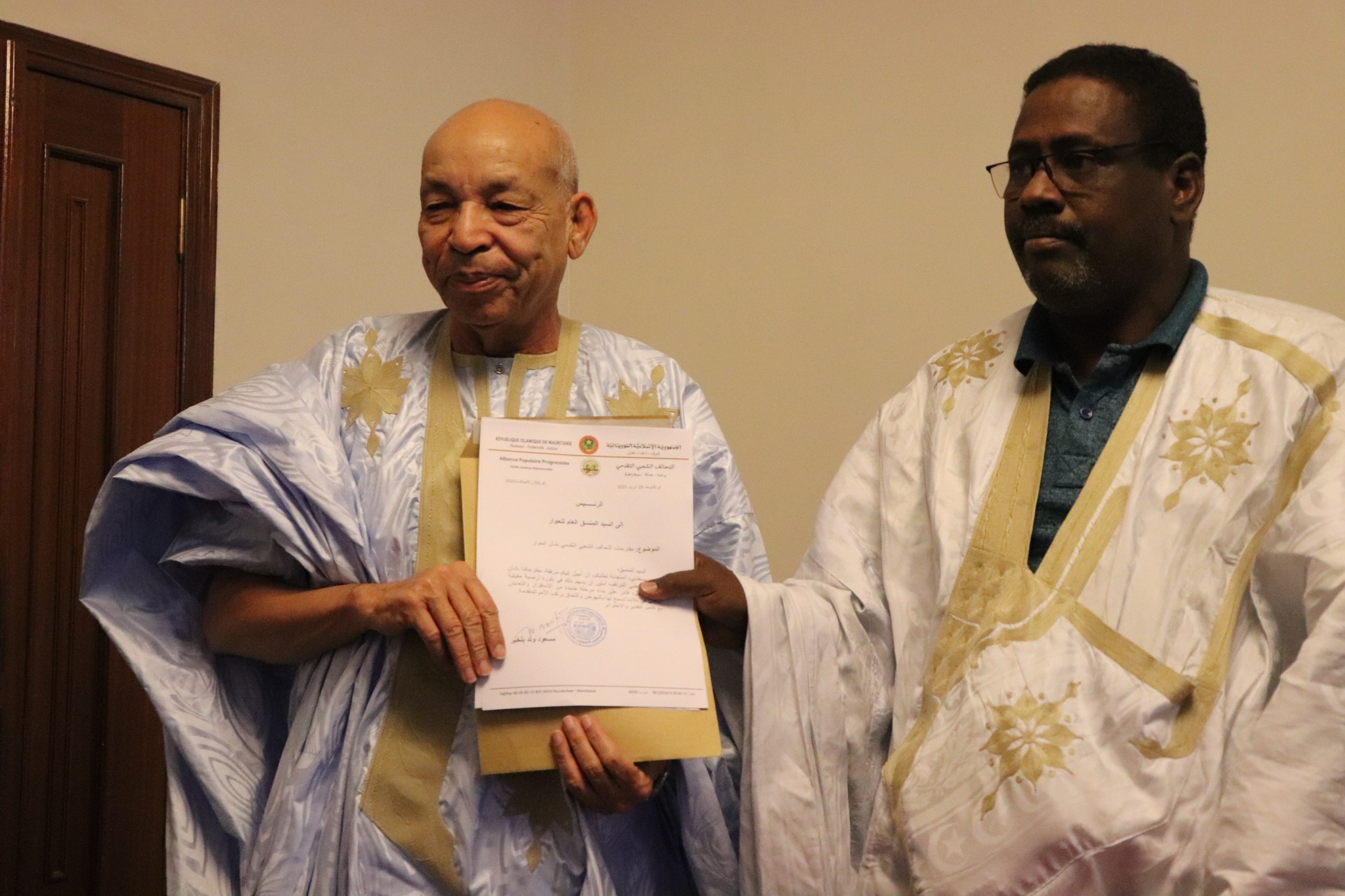 وتسلّم موسى فال، ردود حزب التحالف، من نواب الرئيس مسعود ولد بلخير، والأمين العام للحزب.