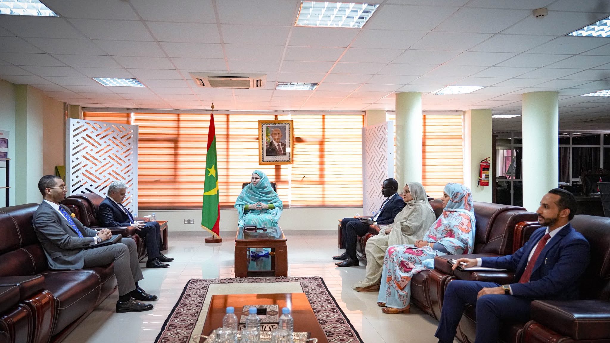 وحضر اللقاء كل من الأمين العام للوزارة آمادو الحاج گي، والمستشارة المكلفة بالتجارة نبغوها القطب، والمستشارة الفنية المكلفة بالاتصال فاطمة المنى، ومدير ترقية التجارة الخارجية محمد الأمين الفايدة.