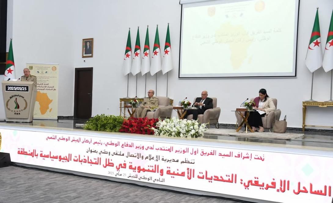 التيار (نيامي) - نظمت أركان العامة للجيش الجزائري، اليوم الأحد، ملتقى تحت عنوان "الساحل الإفريقي: التحديات الأمنية والتنموية في ظل التجاذبات الجيوسياسية بالمنطقة"، بمشاركة واسعة من كبار المسؤولين في الدولة وممثلي السلك العسكري والأكاديمي والإعلامي.