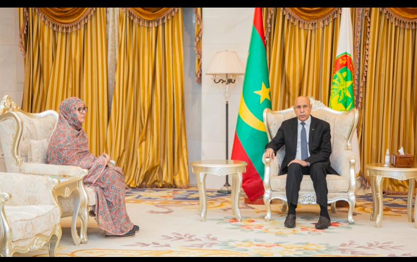 التيار (انواكشوط) - استقبل رئيس الجمهورية، محمد ولد الشيخ الغزواني، اليوم الاثنين بالقصر الرئاسي في نواكشوط، رئيسة المرصد الوطني لحقوق المرأة والفتاة، مهلة أحمد طالبنا، التي سلمته التقرير السنوي للمرصد لعام 2024.