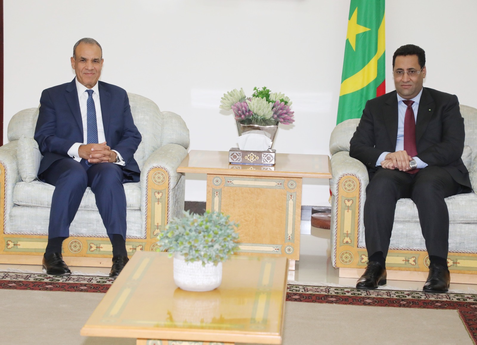 حضر اللقاء وزير الشؤون الخارجية، محمد سالم ولد مرزوك، ومدير ديوان الوزير الأول، الشيخ ولد زيدان، وسفير موريتانيا في القاهرة، الحسين سيدي عبد الله الديه، إلى جانب مستشارة الوزير الأول، هند بنت عينينا