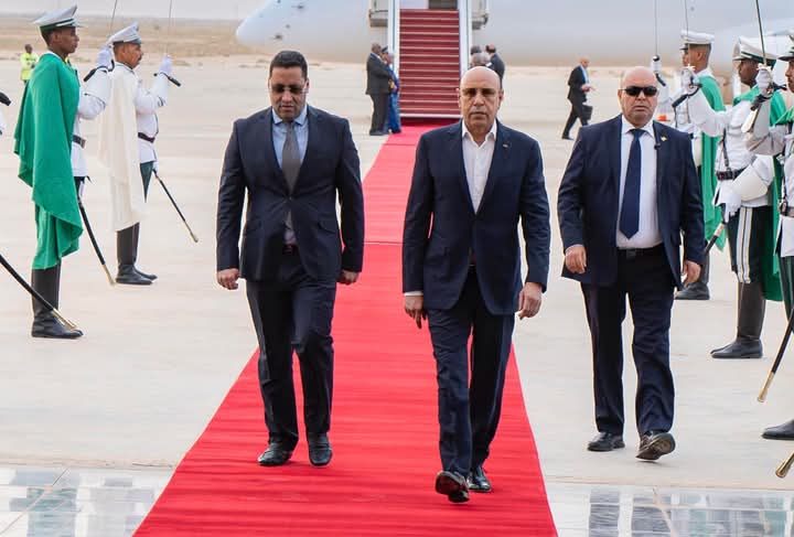 واستقبل الرئيس لدى وصوله مطار نواكشوط الدولي "أم التونسي"، الوزير الأول المختار ولد أجاي، ووزير الشؤون الخارجية والتعاون الإفريقي والموريتانيين في الخارج محمد سالم ولد مرزوك، ووزير الداخلية وترقية اللامركزية محمد أحمد ولد محمد الأمين، بالإضافة إلى قائد الأركان الخاصة للرئيس الفريق البحري اسلكو ولد الشيخ الولي، والمديرة المساعدة لديوان الرئاسة غانديغا فاتيماتا، ووالي نواكشوط الغربية امربيه ربه ولد بونن ولد عابدين، ورئيسة جهة نواكشوط فاطمة بنت عبد المالك.
