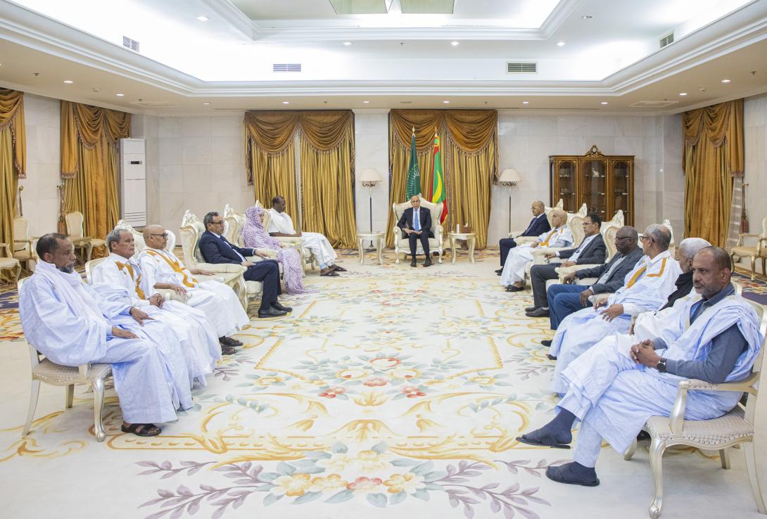 التقى الرئيس الموريتاني، محمد ولد الشيخ الغزواني، مساء اليوم الخميس، في القصر الرئاسي بنواكشوط، قادة أحزاب الأغلبية الداعمة لبرنامجه الانتخابي، حيث ناقش معهم قضايا الساحة الوطنية والحياة السياسية.
