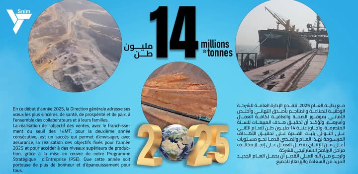 أعلنت الشركة الوطنية للصناعة والمناجم "سنيم" تحقيقها هدف المبيعات المحدد للعام المنصرم 2024، بتجاوز إنتاج 14 مليون طن للعام الثاني على التوالي، مؤكدة قدرتها على مواصلة تحقيق الأهداف الطموحة المرسومة للعام الجديد 2025.
