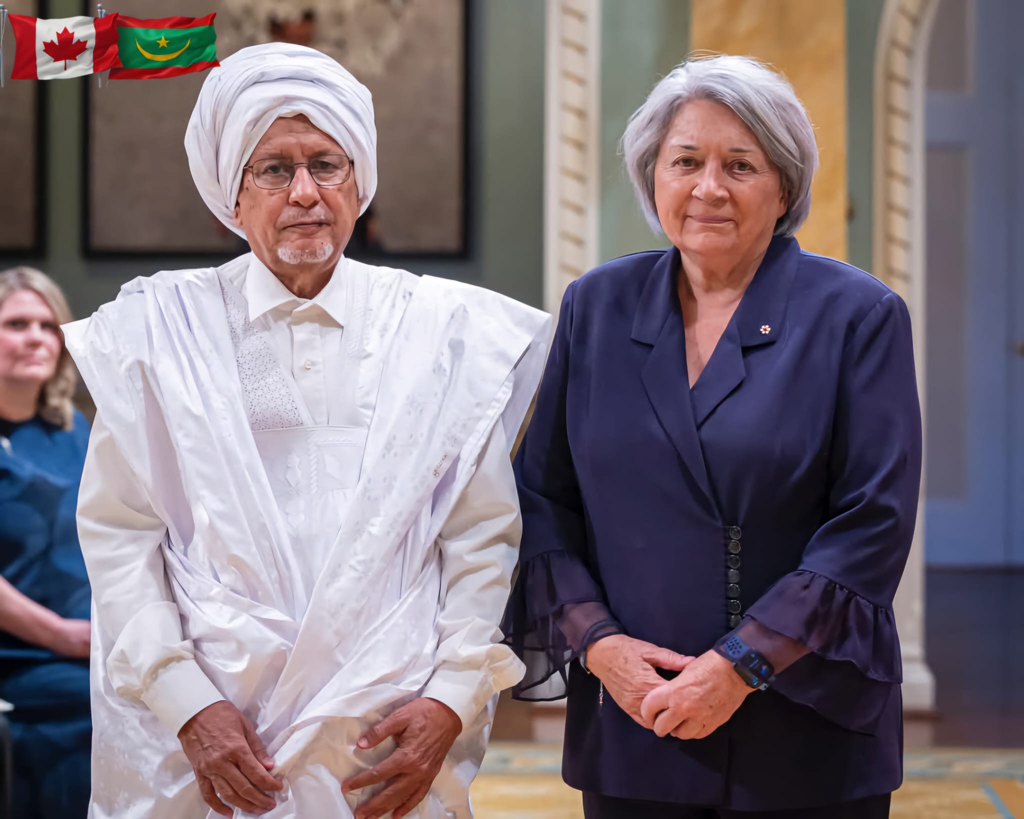 استقبلت الحاكمة العامة لكندا، ماري سيمون، يوم الأربعاء 15 يناير الجاري، السفير الموريتاني الجديد، محمد ولد عابدين ولد امعييف، في العاصمة أوتاوا، حيث سلمها أوراق اعتماده بصفته سفيرًا فوق العادة وكامل السلطة للجمهورية الإسلامية الموريتانية في كندا.