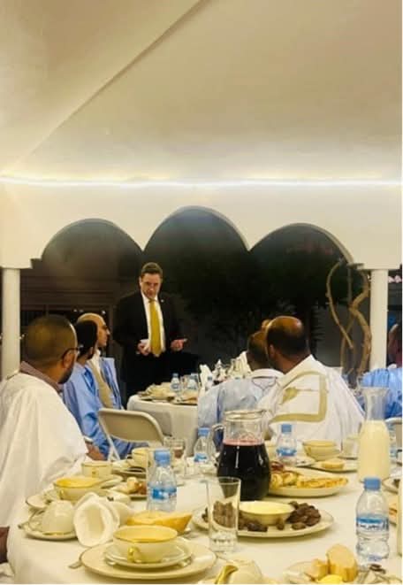 التيار (نواكشوط) - أقام القائم بالأعمال بالسفارة الأمريكية في نواكشوط، جون آيس، حفل إفطار في مقر إقامته، حضره عدد من الشخصيات من القطاعين العام والخاص، من بينهم أعضاء مجلس الأعمال الأمريكي الموريتاني.