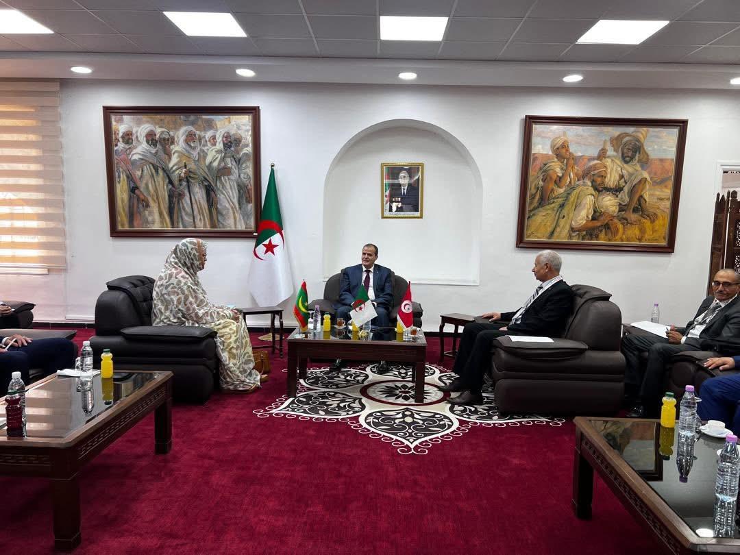 وتناول الاجتماع آفاق تطوير التعاون التجاري بين موريتانيا والجزائر وتونس، مع التركيز على آليات ترقية المبادلات البينية وتوسيع مجالات الشراكة الاقتصادية.