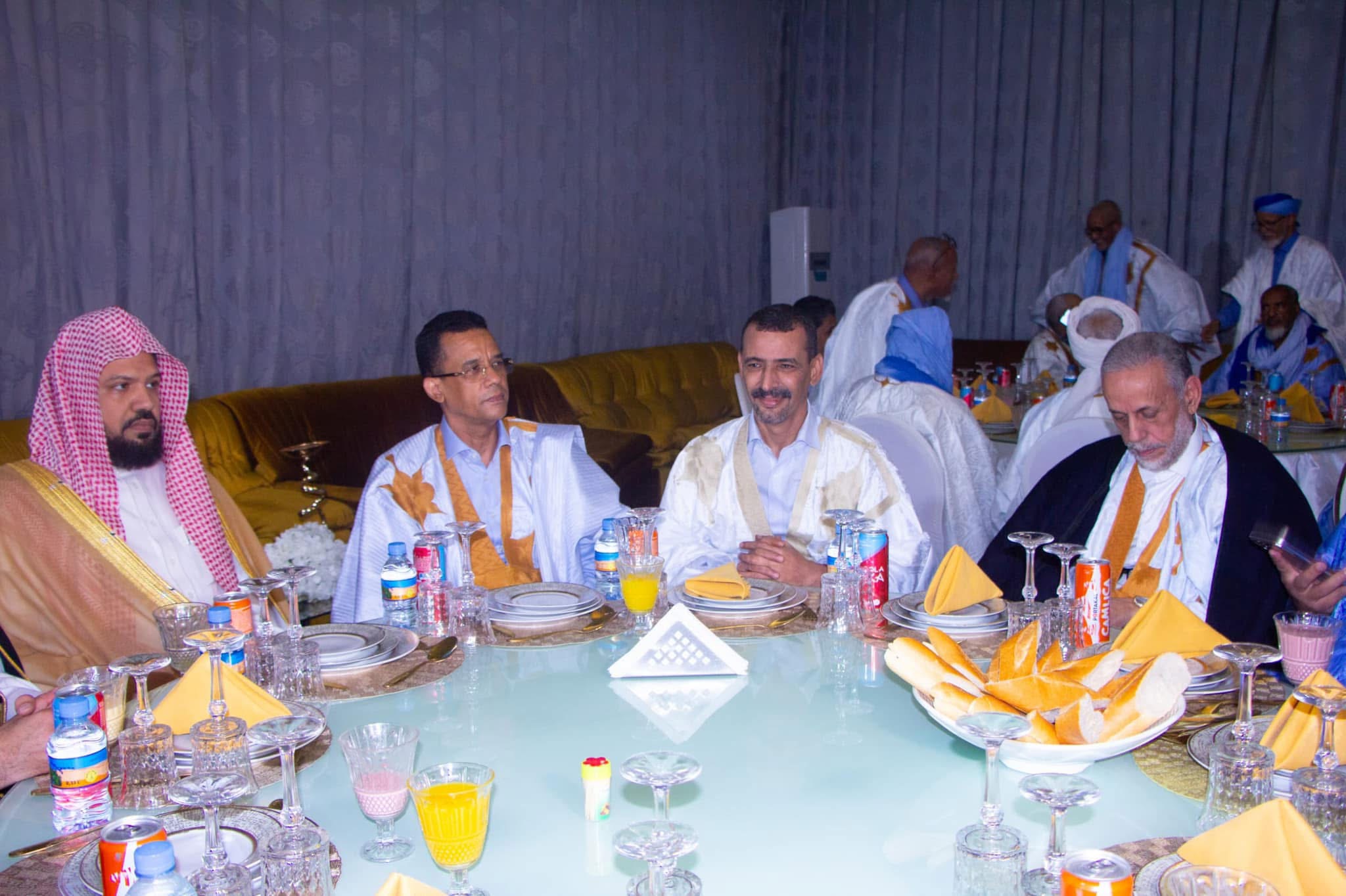 التيار(نواكشوط) - نظمت وزارة الشؤون الإسلامية والتعليم الأصلي، مساء أمس، حفل عشاء استضافت خلاله إمام المسجد النبوي الشريف، أحمد بن علي الحذيفي، والوفد المرافق له، وذلك في إطار الزيارة التي يؤديها الضيف إلى موريتانيا.